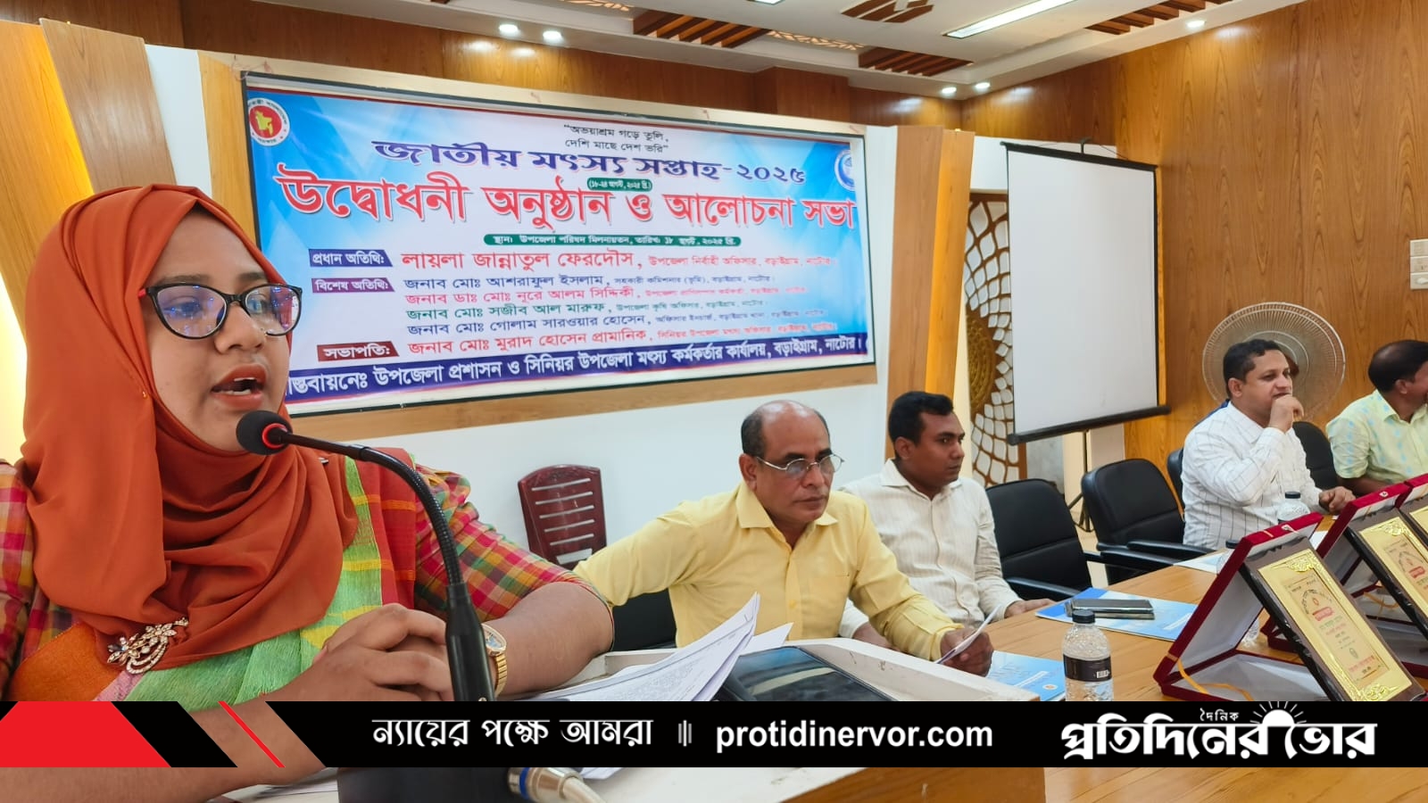 "অভয়াশ্রম গড়ে তুলি, দেশী মাছে দেশ ভরি" প্রতিপাদ্যে নাটোরের বড়াইগ্রামে জাতীয় মৎস সপ্তাহ-২৫ উদ্বোধন করেন উপজেলা নির্বাহী অফিসার লায়লা জান্নাতুল ফেরদৌস। এ উপলক্ষে সোমবার (১৮ আগষ্ট) সকাল ১১ টায় উপজেলা চত্বর থেকে একটি বর্নাট্য র্যালী বের হয়ে উপজেলার বিভিন্ন সড়ক প্রদক্ষিণ করে উপজেলা চত্বরে এসে শেষ হয় এবং উপজেলা চত্বর পুকুরে মাছের পোনা অবমুক্ত করা হয়।